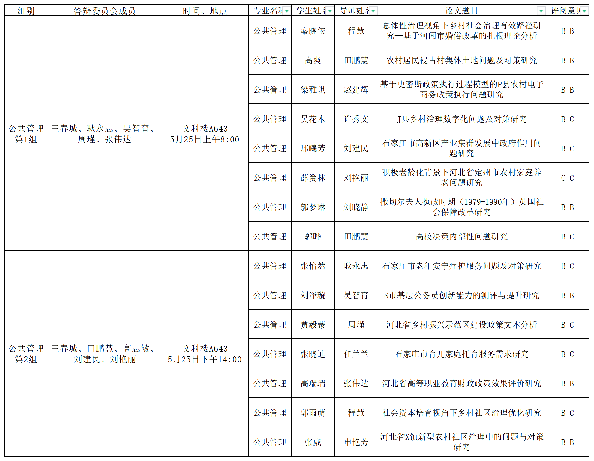 williamhill英国2024年公共管理专业(学硕)硕士学位论文答辩安排